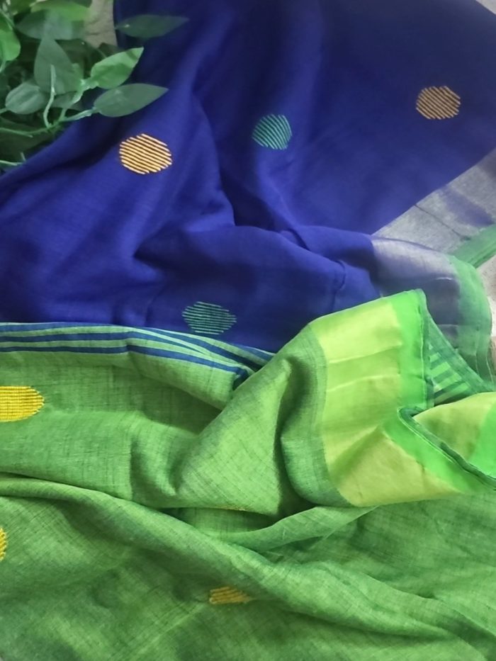 Green & Blue Cotton Saree with Circle Woven Bootas