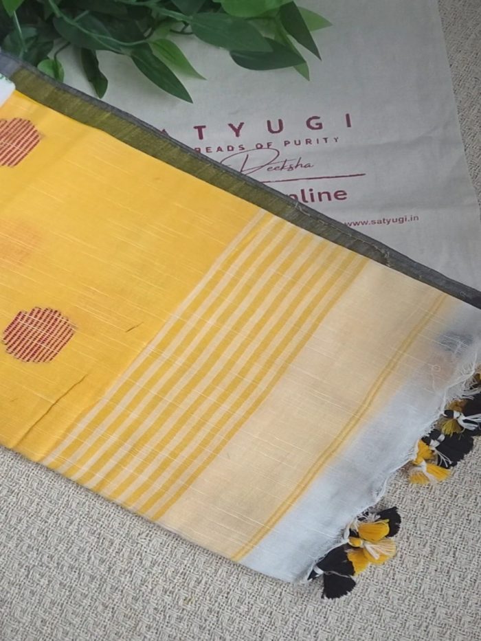 Grace your special moments with this beautiful yellow cotton saree, perfect for pooja and other auspicious occasions. The vibrant yellow shade symbolizes positivity, prosperity, and divine energy, making it an ideal choice for spiritual gatherings and traditional celebrations.